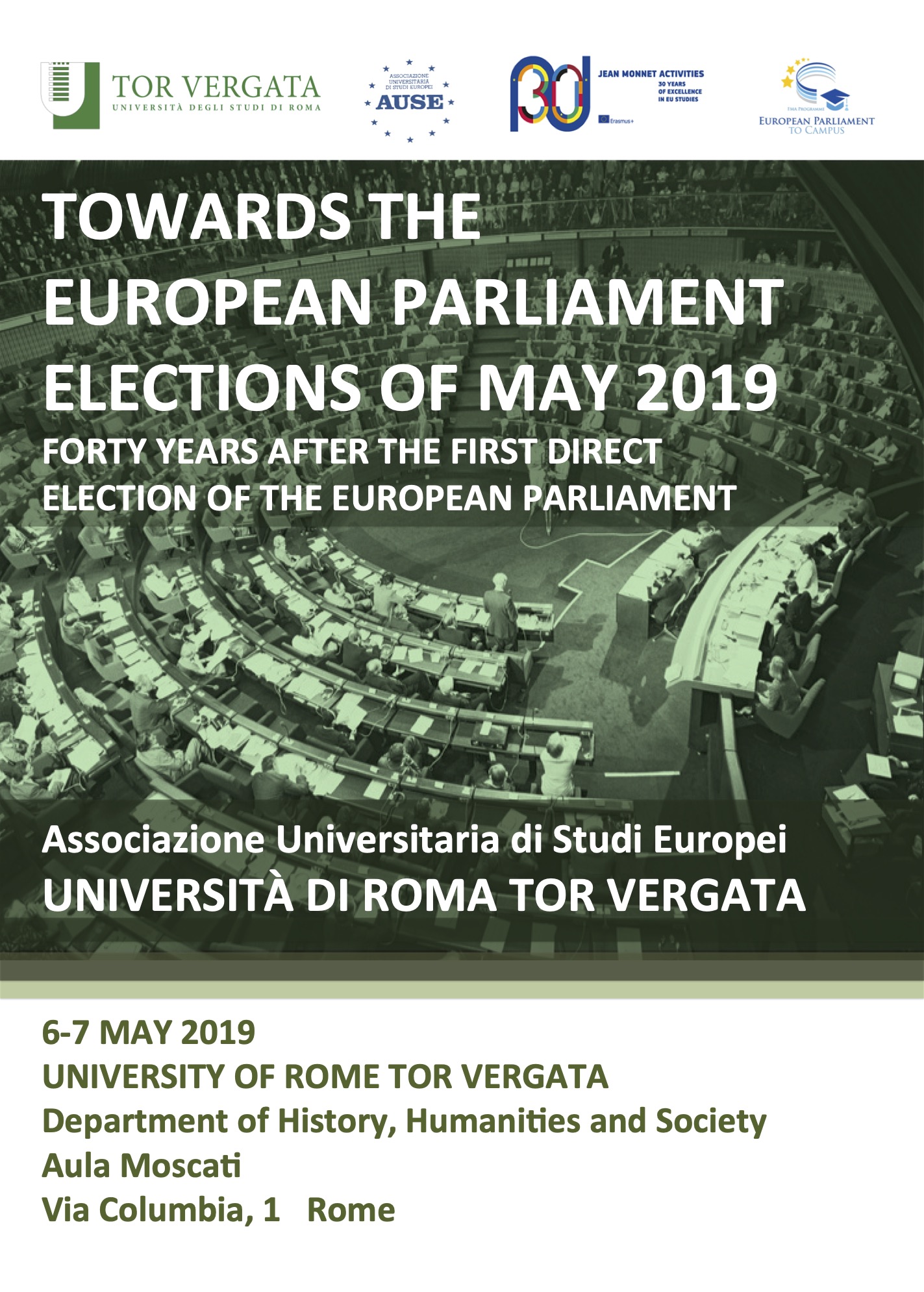 Il 6 e 7 maggio 2019 si è svolto presso il Dipartimento di Storia, Patrimonio culturale, Formazione e Società dell’Università di Roma Tor Vergata il convegno internazionale “Towards the European Parliament Elections of May 2019. Forty Years After the First Direct Election of the European Parliament”. Organizzato e sostenuto dall’Ateneo e da AUSE in collaborazione con la European Parliament Former Members Association, il convegno ha rappresentato un’occasione di riflessione e di confronto interdisciplinare in vista delle elezioni europee del 23-26 maggio 2019. Studiosi di storia, filosofia, economia, diritto e scienze politiche, insieme ad alcuni rappresentanti dei gruppi parlamentari e delle fondazioni politiche europee e ai numerosi